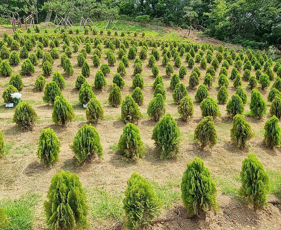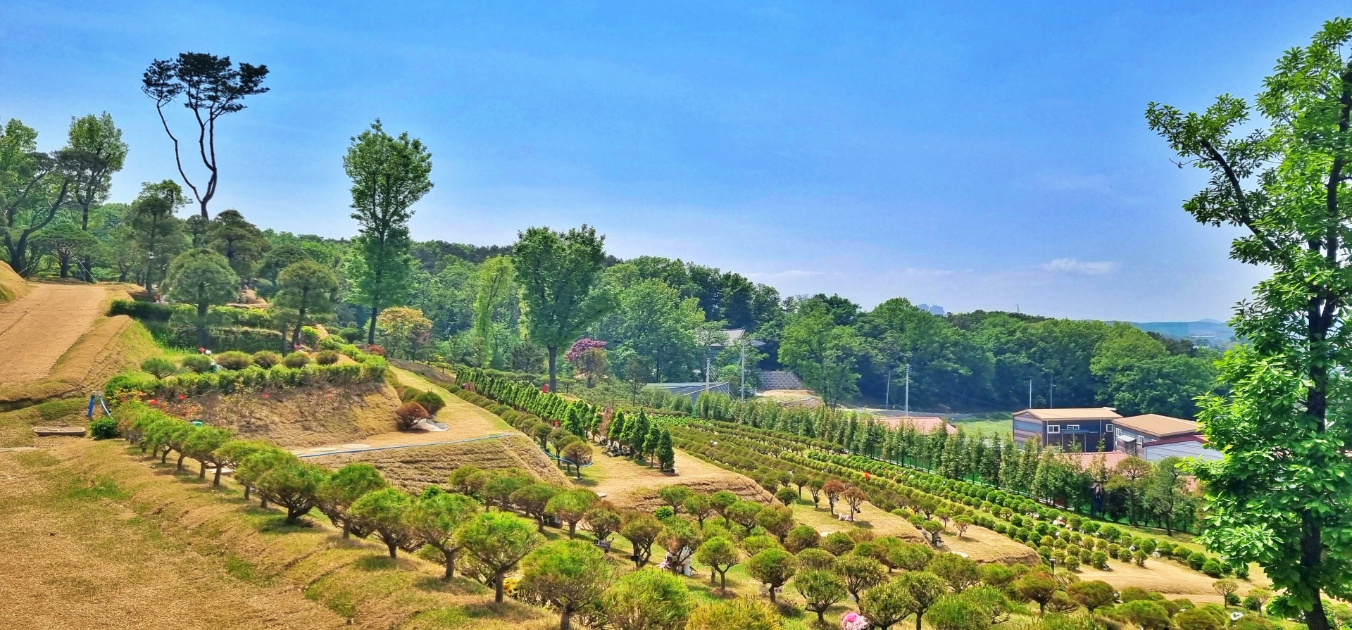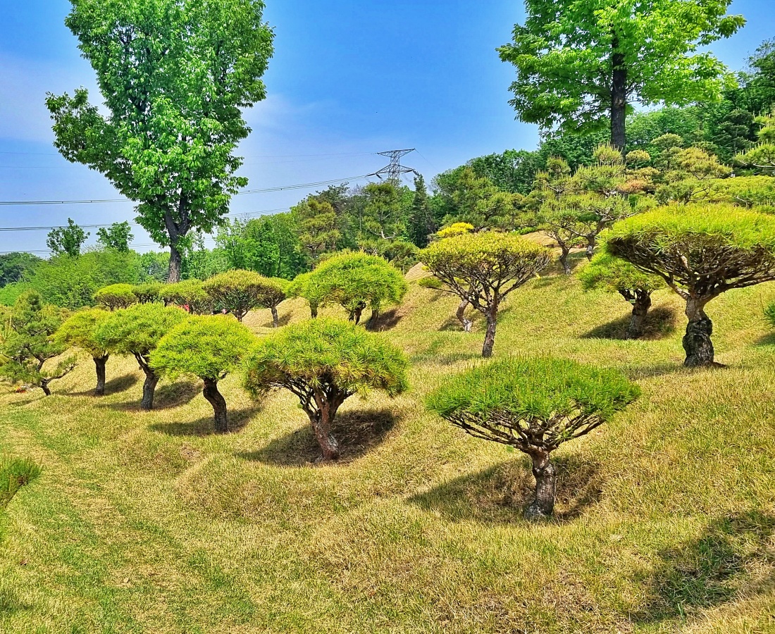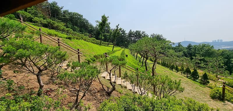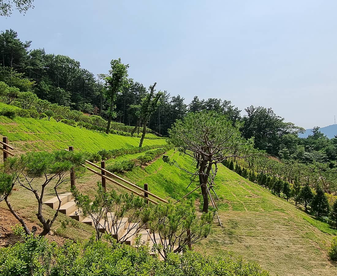 큰 소나무 아래 일정한 간격으로 단을 나누어