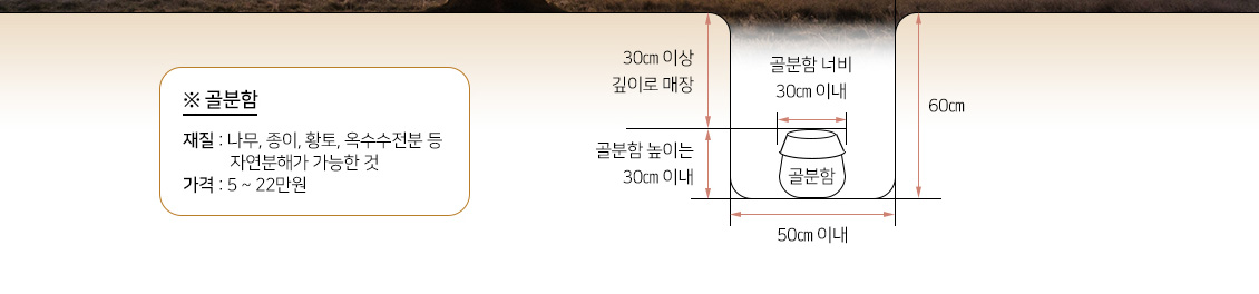 1. 가로, 세로 25Cm 넓이의 지표면 아래로 50Cm 깊이의 광중을 파고,